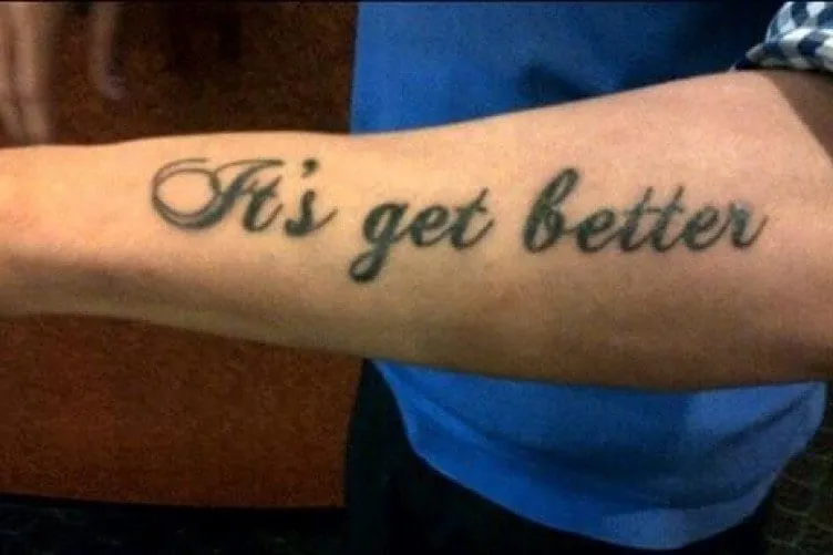 We can only guess that this was supposed to say “it gets better.” Sometimes, people need a reminder that life gets better, that’s why this individual decided to get this inspiring message tattooed on their skin.